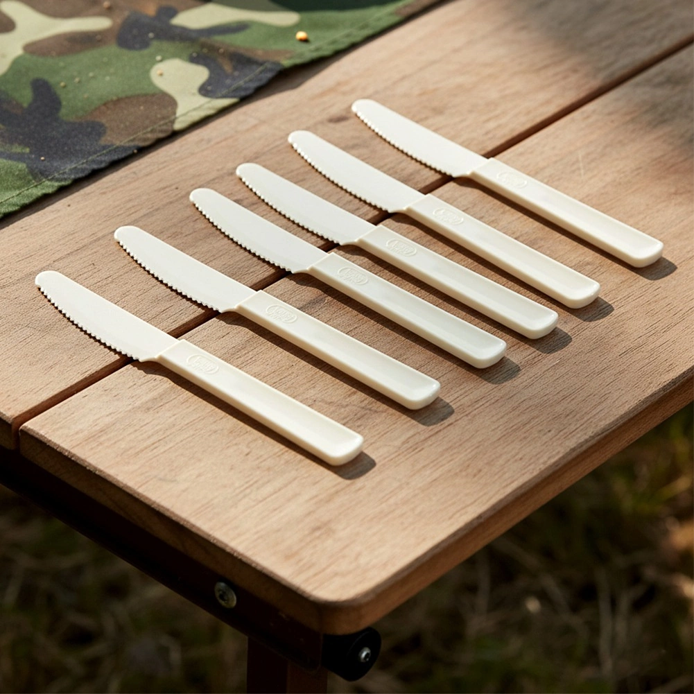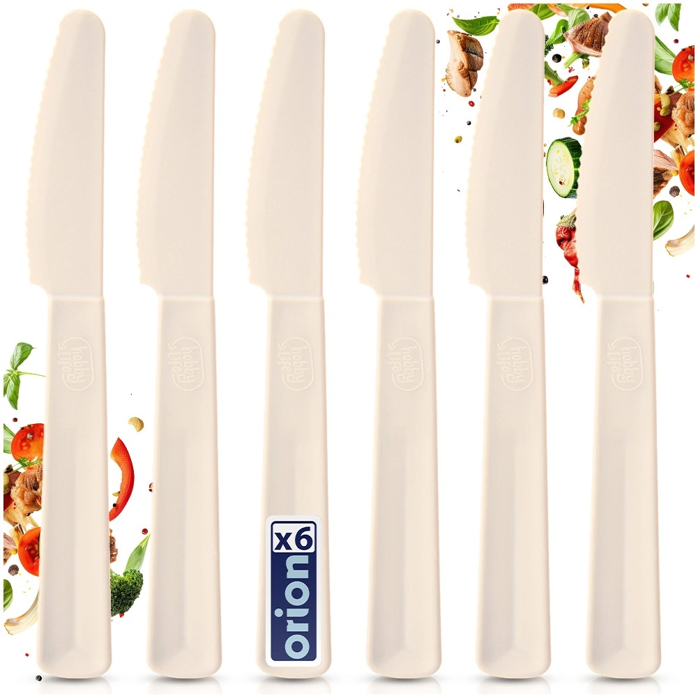 Sættet med 6 plastknive SANDY er ideelt til daglig brug samt til picnic, camping og hygge i haven. Knivene er lette, men stærke og holdbare mod revner og deformering. De skærer sikkert blødere fødevarer som brød, kager, frugt og grøntsager.