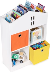 Børnebogreol i husform med rum og stofkasser ECOTOYS