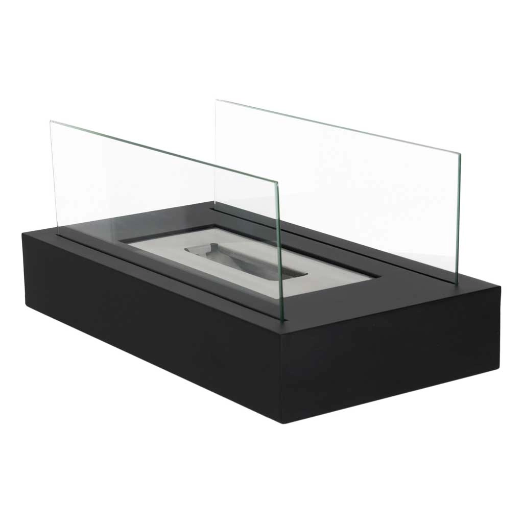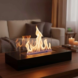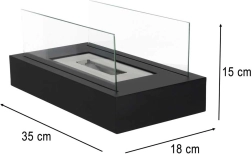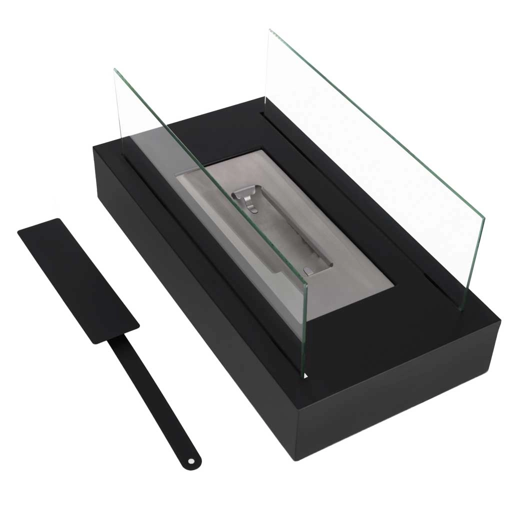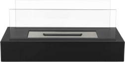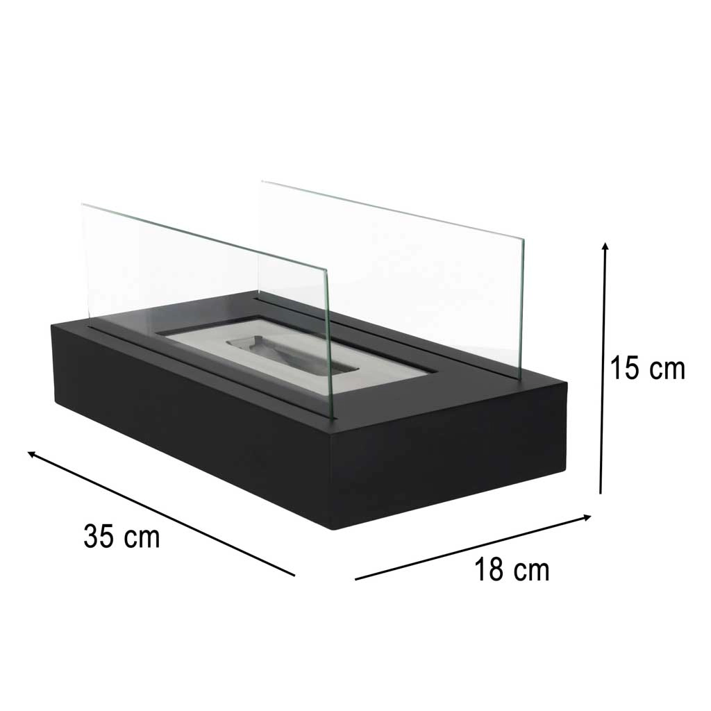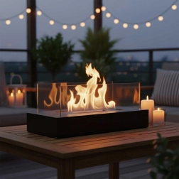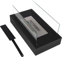 Nyd en ægte flamme uden røg, sod og lugt. Denne bordbiopejs med rektangulær base kombinerer et elegant, minimalistisk udtryk med praktisk drift på bioethanol. Beskyttende paneler af hærdet glas øger sikkerheden og flammens stabilitet.