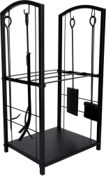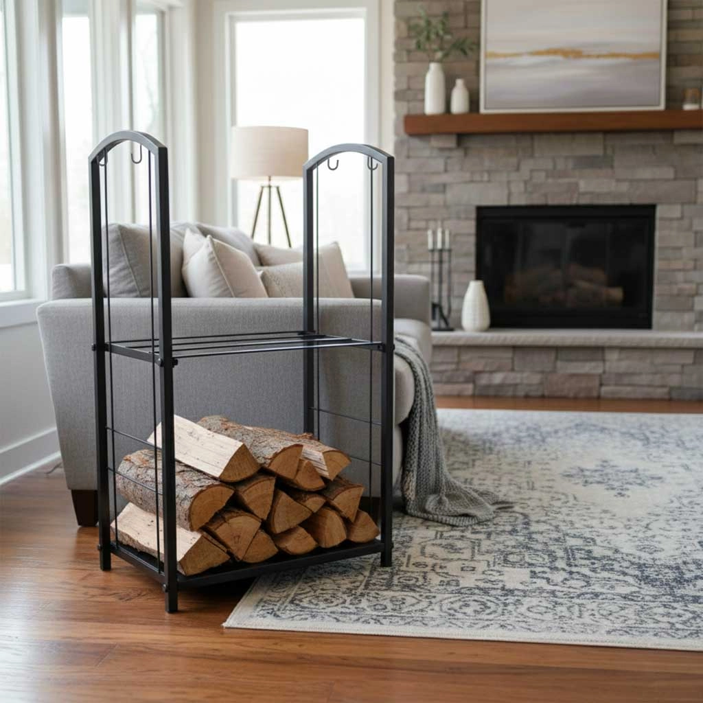 - Orden ved pejsen takket være to hylder og kroge til værktøj
