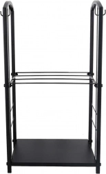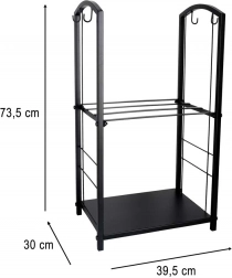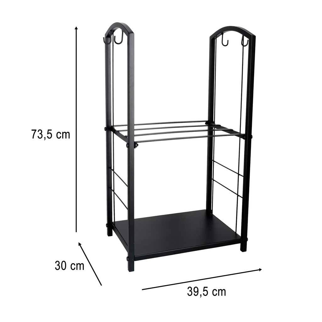 Dette kompakte stativ gør opbevaring af brænde til et designelement i hjemmet. Den robuste ramme af smedejern med pulverlak er modstandsdygtig over for ridser og tåler daglig brug. Den nederste, fulde hylde beskytter gulvet mod snavs, mens den øverste ventilerede flade holder brændet tørt og overskueligt placeret.