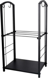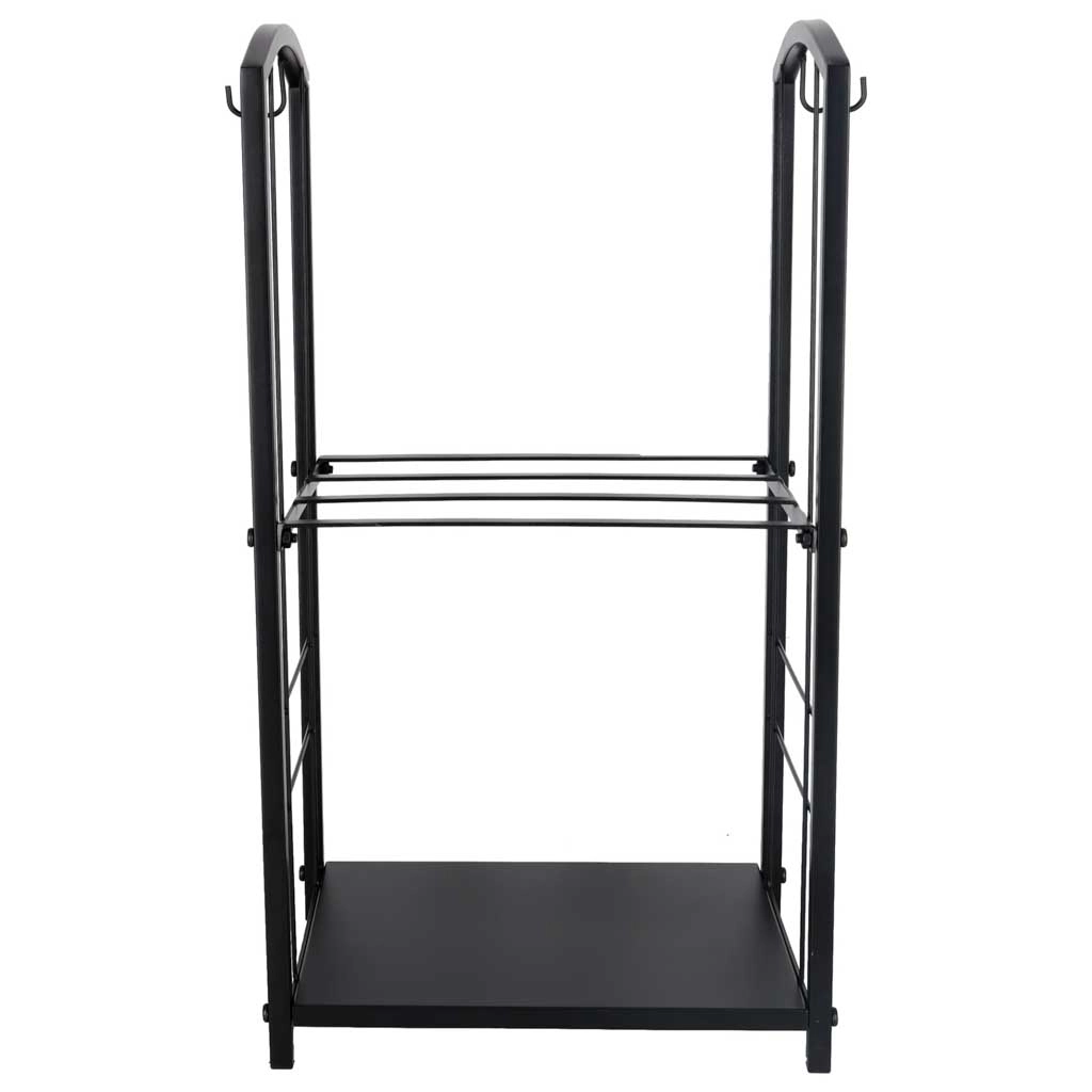 Den nederste, lukkede hylde beskytter gulvet, mens den øverste ventilerede del fremmer luftcirkulation og holder træet tørt og pænt organiseret.