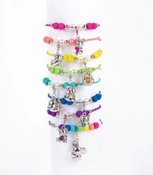Indeholder en flettet snor i figurens farve og 11 farvede perler. Nem at træ perlerne på, behagelig at bære og justerbar størrelse til børnehåndled.