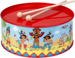 Oplev sjov med en tromme med indiansk motiv, som er ideel til børns første musikalske skridt. Det robuste metalkabinet og den gode kvalitet sikrer en behagelig lyd og lang levetid. Takket være snoren kan barnet nemt hænge trommen om halsen og spille når som helst og hvor som helst.