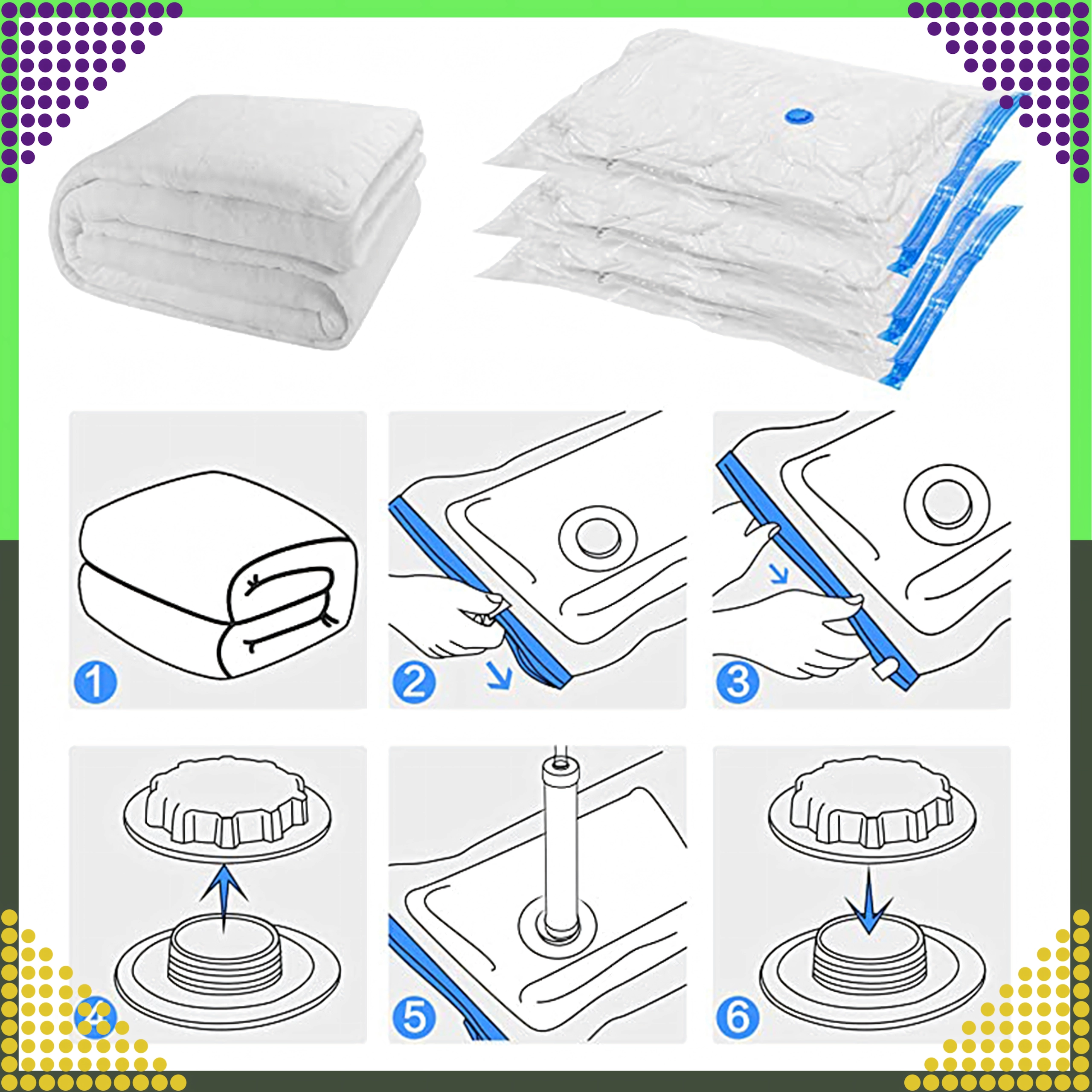 Komprimer voluminøse tekstiler og få mere plads i garderoben og kufferten. Ideel til dyner, sweatre og vinterjakker.