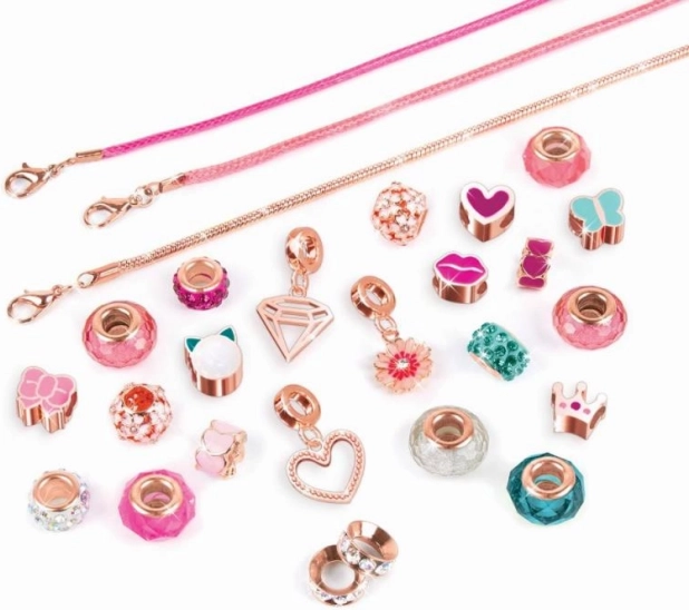 Lav dine egne smykker med dette lyserøde armbånds-kitsæt, som indeholder alt, hvad du behøver: perler, vedhæng, færdige armbånd og instruktioner. Ideel kreativ underholdning for børn fra 8 år.