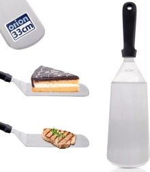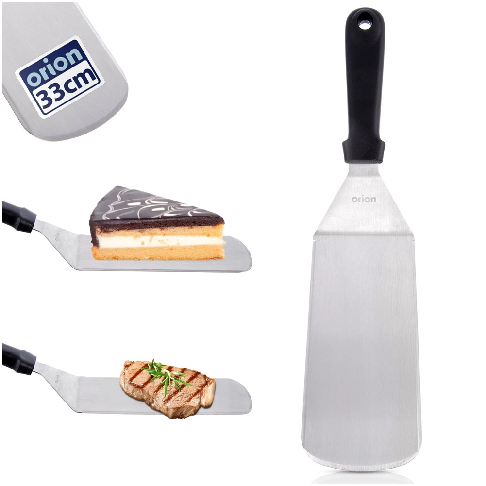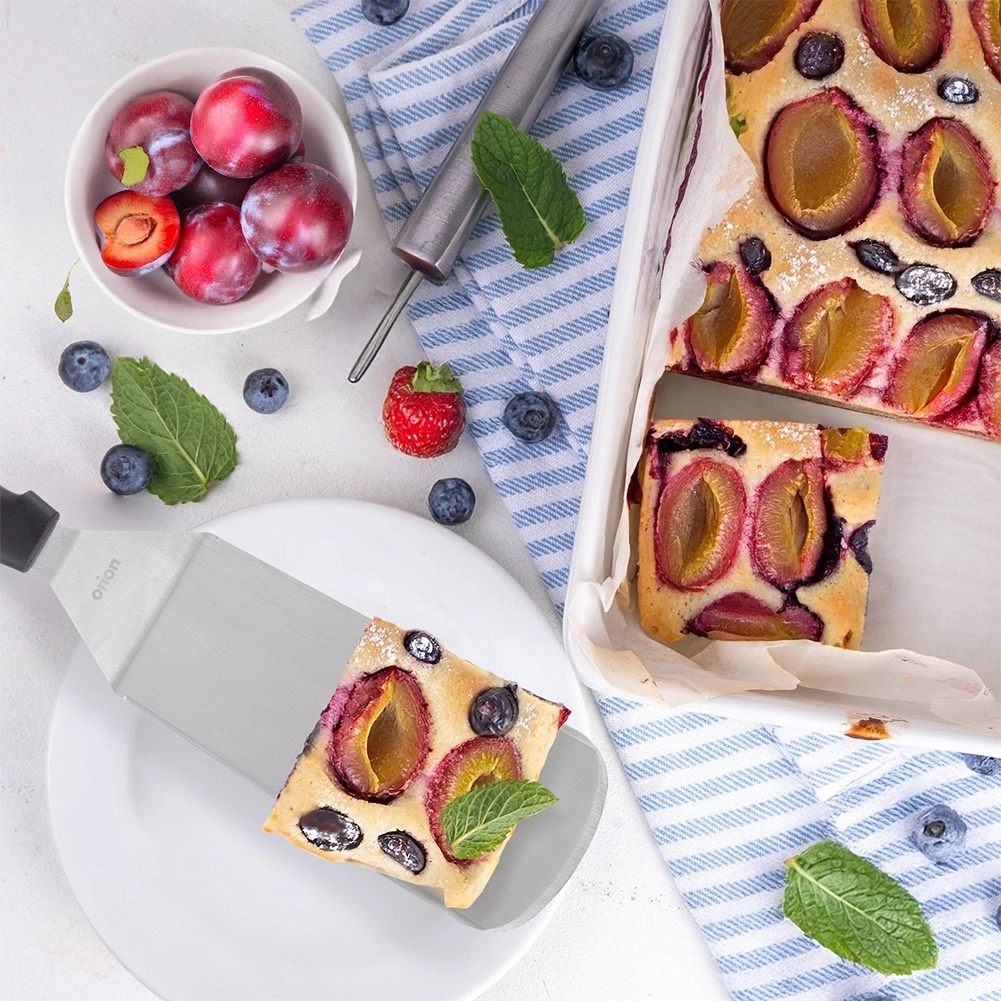 Den stabile, flade klinge i rustfrit stål glider let ind under retten og muliggør sikker vending selv af større portioner uden at de falder fra hinanden.