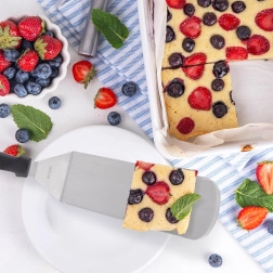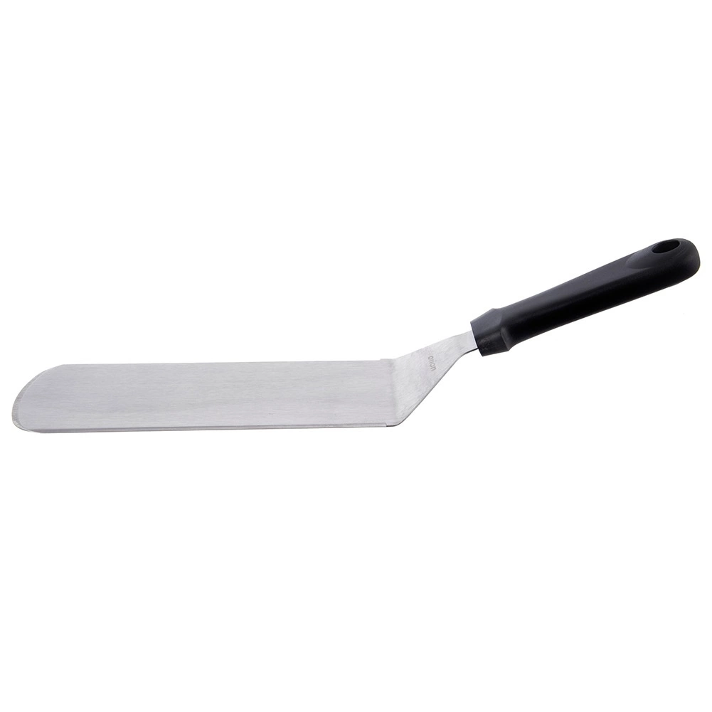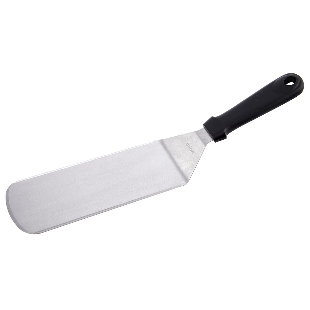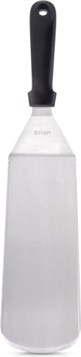 Den robuste klinge i rustfrit stål med glat overflade skubber let ind under pandekager, burgere eller fisk og holder hele stykket samlet.