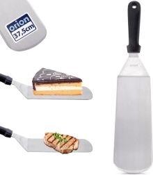Den praktiske rustfri palet, 38 cm, gør madlavningen lettere. Den brede og stabile klinge på 7,5 cm med skarpe kanter muliggør ikke blot nem vending, men også portionering og skæring direkte ved servering. Holdbare materialer sikrer lang levetid og komfortabel brug.