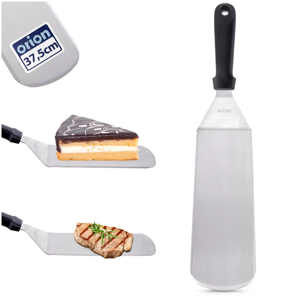Universel køkkenpalet i rustfrit stål, 38 cm, til nem opskubning og vending af retter. Har en bred arbejdsflade, skarpe kanter til udskæring, ergonomisk håndtag og er egnet til opvaskemaskine. Ideel til pandekager, fisk, omeletter, lasagne og burgere.