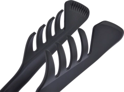 Universelle køkkentænger BLACKLINE af holdbar termoplast er ideelle til både madlavning og grillning. De kombinerer funktionen af tang og palet, så du med ét værktøj nemt kan opsamle, vende og servere mad. De er skånsomme mod nonstick-kogegrej, tåler temperaturer op til 200 °C og kan tåle opvaskemaskine.