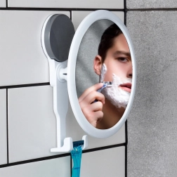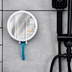 For maksimal bekvemmelighed er spejlet udstyret med vinkelregulering, så du kan indstille det efter din højde og lyset. Derudover har det praktiske kroge til ophæng af barberhøvl, tandbørste eller et lille håndklæde (bæreevne op til 2 kg), så alt er lige ved hånden. Monteringen er hurtig og værktøjsfri – tryk blot sugekoppen mod en ren, glat overflade.