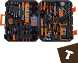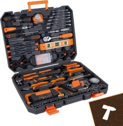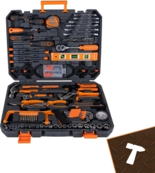 Med dette alsidige sæt er du klar til møbelmontage, huslige reparationer og mindre service på bil eller cykel. Den robuste plastkuffert med håndtag holder orden og gør det nemt at finde det rigtige værktøj hurtigt. Ergonomiske, gummibelagte håndtag sikrer et sikkert greb og komfort ved længerevarende arbejde.