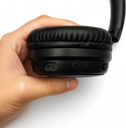 Moderne Bluetooth giver en pålidelig trådløs forbindelse til telefon, laptop og tablet. Den ergonomiske, lette konstruktion med bløde puder sikrer komfort selv ved lang tids lytning, mens det sammenklappelige design gør dem nemme at have med i rygsæk eller taske.