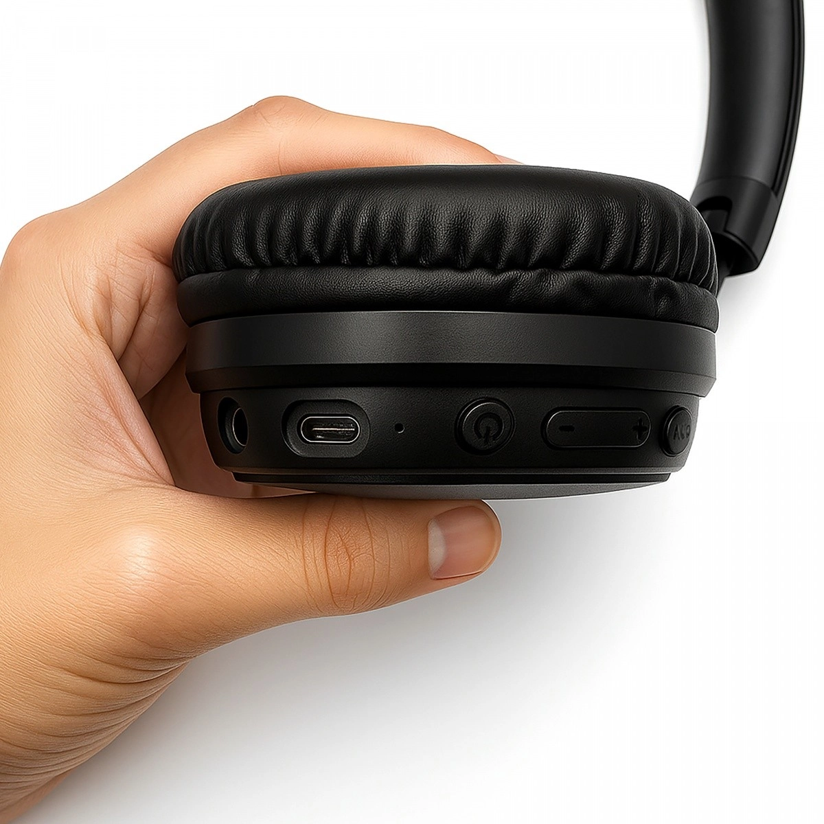 Bløde ørepuder og en polstret hovedbøjle sikrer komfort selv ved lange lytninger. Sammenklappelige hængsler gør dem lette at transportere.