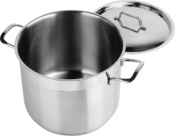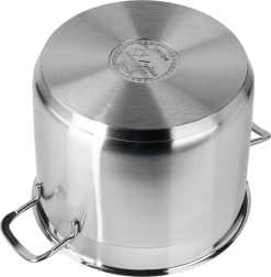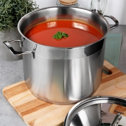 Premium rustfri gryde med låg og en kapacitet på 6,5 l er ideel til daglig madlavning og simring. Takket være den flerlags akutermiske bund akkumulerer og fordeler den varmen jævnt, den er egnet til alle typer komfurer inklusive induktion og muliggør energieffektiv madlavning med et minimum af fedt. Kvalitets rustfrit stål 18/10, kraftige vægge, behagelige greb og nem rengøring inklusive opvaskemaskine gør gryden til en pålidelig hjælper i ethvert køkken.