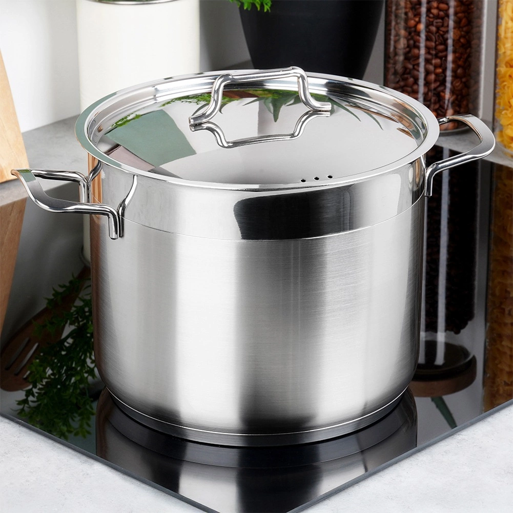 Denne robuste gryde i kvalitets rustfrit stål 18/10 i mat finish med en elegant blank ring øverst er designet til krævende hjemlig og professionel madlavning. Den flerlags akutermiske bund sørger for effektiv varmeoverførsel, så du tilbereder retter hurtigere, mere jævnt og med lavere energiforbrug.