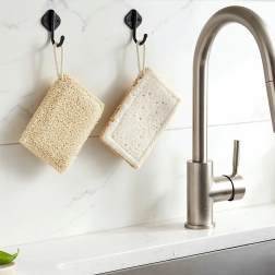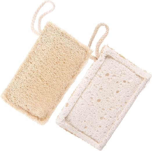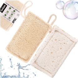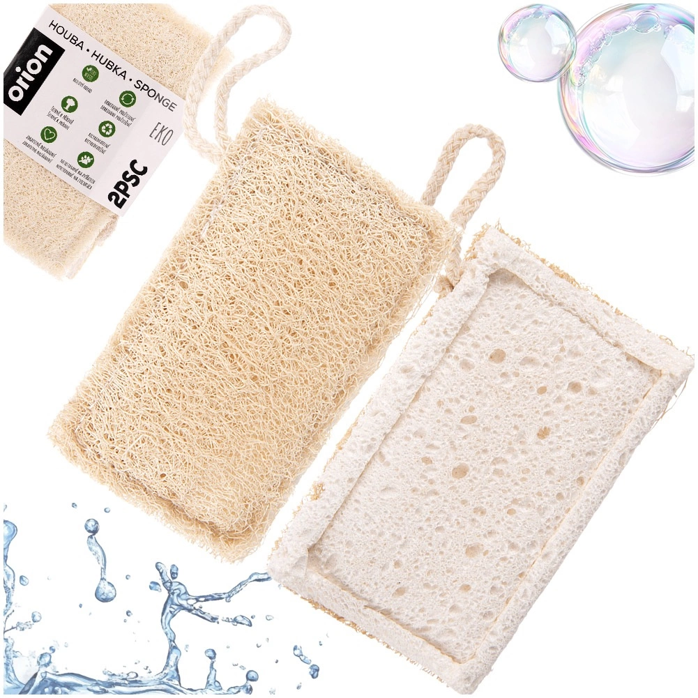 Praktisk sæt med to køkkensvampe af naturmaterialer til daglig rengøring. Den ene side af luffa til effektiv skrubning, den anden af cellulose til skånsom vask og høj sugeevne. 100% biologisk nedbrydelige, holdbare og genanvendelige – ideelle til service, vask og bordplader.