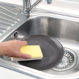 Fugt blot med vand, og svampen klarer fastbrændinger og fedt på tallerkener, gryder og pander. Spar tid, penge og miljø.