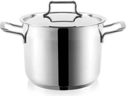 Sættet med 12 dele af rustfrit stål-køkkengrej ANETT dækker alt fra opvarmning af saucer til kogning af fond. Kvalitets rustfrit stål 304 (18/10) med mat overflade og poleret dekorativt bånd garanterer lang levetid, hygiejne og et tidløst udseende. Den tykvægget krop og flerlags bund sikrer jævn varmefordeling uden at brænde på.