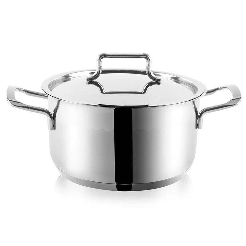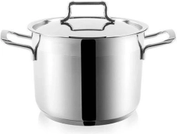 Alle dele er universelle: fungerer på gas, el, glaskeramik, halogen og induktion og kan også bruges i ovnen. Låg af rustfrit stål har åbninger til dampafledning og delte mål for mere praktisk brug. Køkkengrejet er tungt og stabilt med holdbare nittede greb for sikker håndtering.