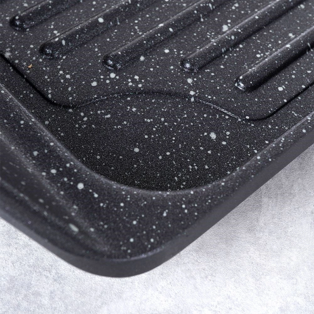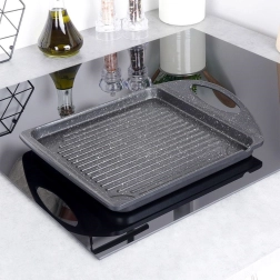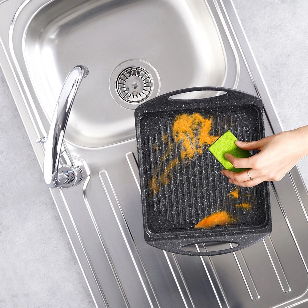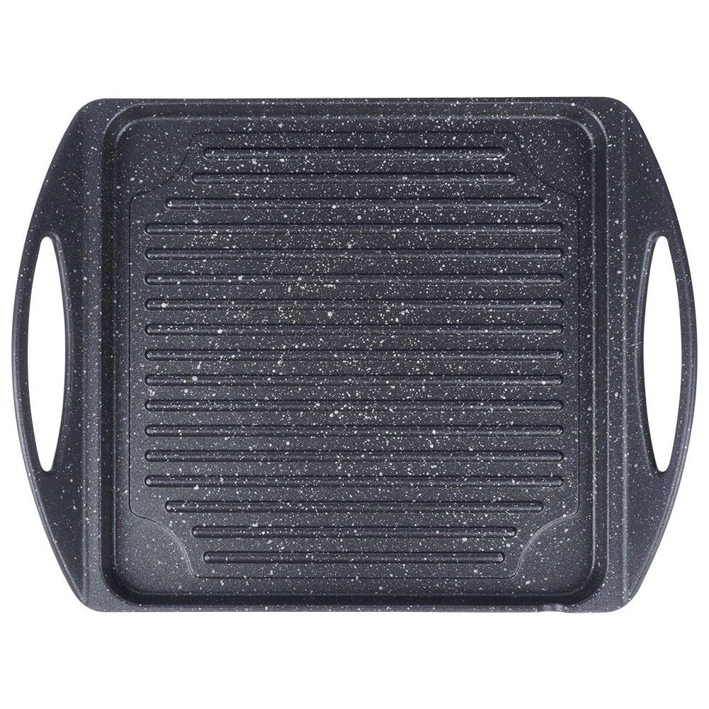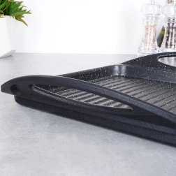 Den alsidige grillplade GRANDE gør det let at grille og stege direkte på komfuret, i ovnen og på grillen. Den non-stick granitbelægning PFLUON GRANIT er modstandsdygtig over for ridser og høje temperaturer, så råvarerne ikke brænder på og bevarer deres autentiske smagsprofil og næringsværdi. Den riflede overflade leder overskydende fedt væk og skaber et attraktivt grillmønster.
