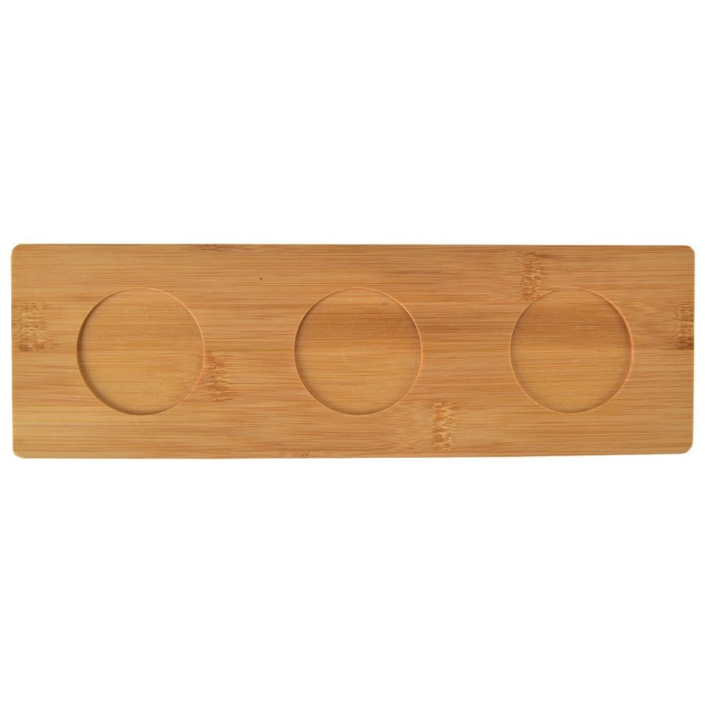 Den rektangulære bakke af naturbambus holder skålene på plads selv under transport. Bambus er let, stærk og naturligt resistent over for fugt og lugte.