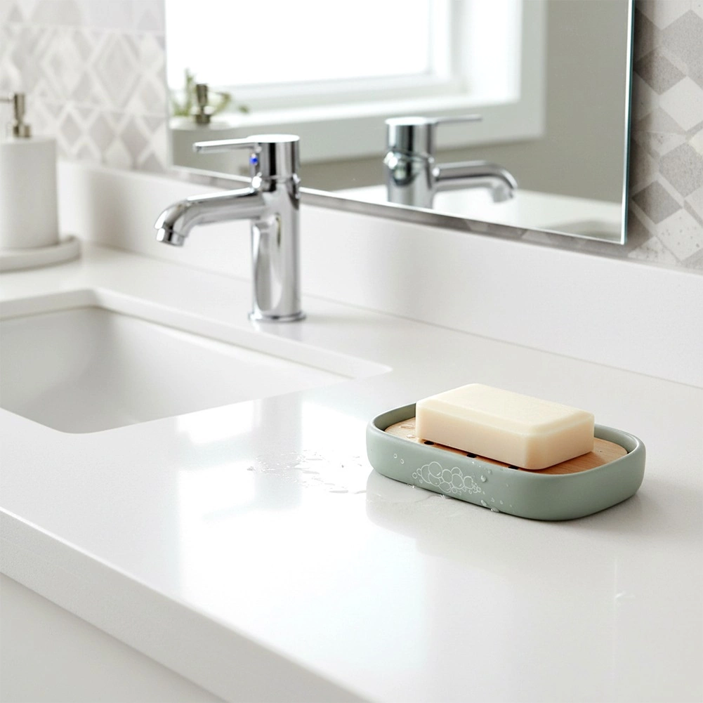 Målene 13 × 9 × 2 cm sparer plads og passer perfekt på bordpladen i badeværelset, på toilettet og i køkkenet.