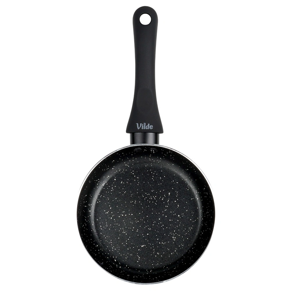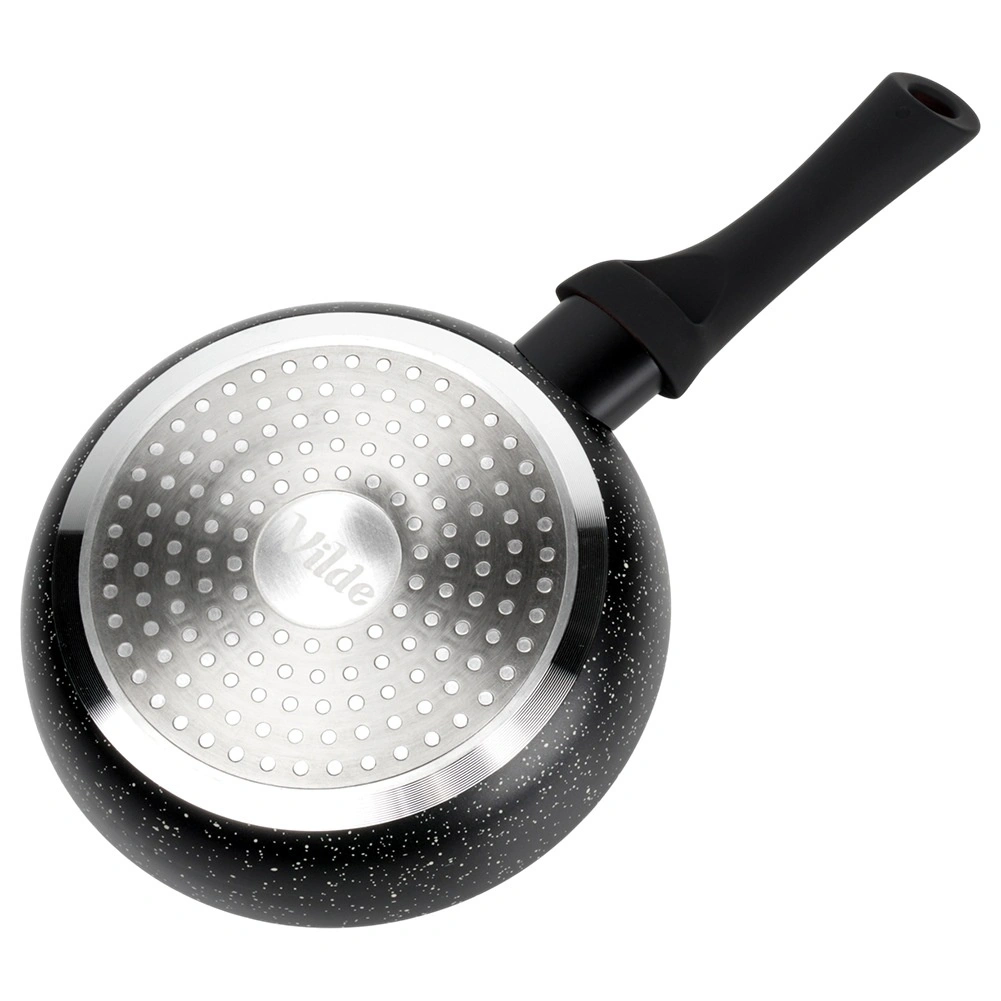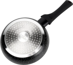 Denne stilfulde pande med granit-non-stick-belægning er ideel til stegning af æg, grøntsager og kød med et minimum af fedt. Kroppen i aluminium sikrer hurtig varmeoverførsel og energibesparende madlavning, mens det moderne sorte design passer perfekt i ethvert køkken.
