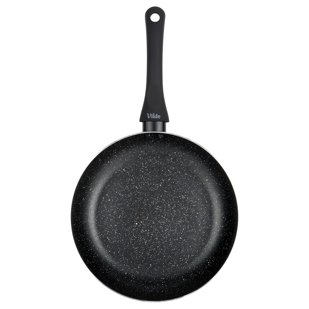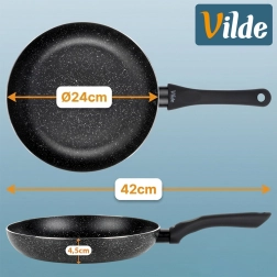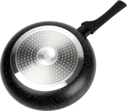 Denne granitpande fra Vilde Black Line forener moderne design og praktiske funktioner. Det holdbare aluminiumsstøbegods med non-stick granitbelægning sikrer nem frigivelse af maden og hurtig rengøring. Den elegante sorte stenfinish passer perfekt i ethvert køkken.