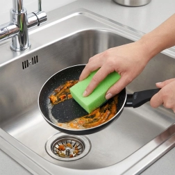 Den særlige granitbelægning sikrer nem frigivelse af maden, mindre forbrug af fedt og enkel rengøring – ideel til daglig brug.