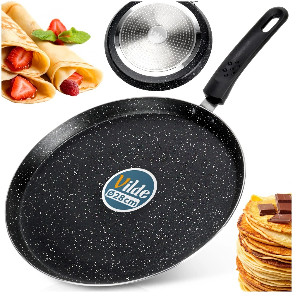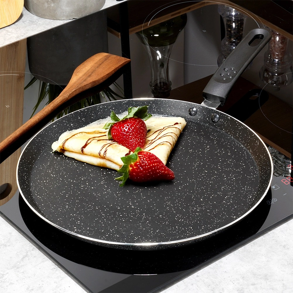 Denne elegante granit pandekagepande er ideel til perfekt tynde pandekager, små tykke pandekager og omeletter. Den lave kant og den brede, plane overflade gør det nemt at hælde dej på og vende. Den non-stick belægning gør det muligt at lave mad med minimalt olieforbrug og opnå skrøbelige, jævnt tilberedte resultater.