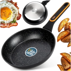 Det holdbare granitlag forhindrer påbrænding og gør det muligt at lave mad med minimalt olie. Maden slipper let, og rengøringen er hurtigt klaret.