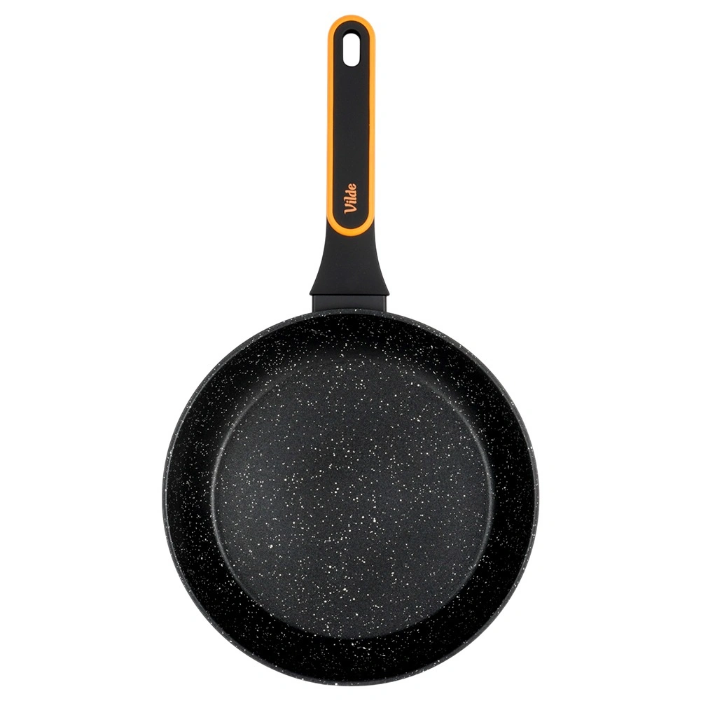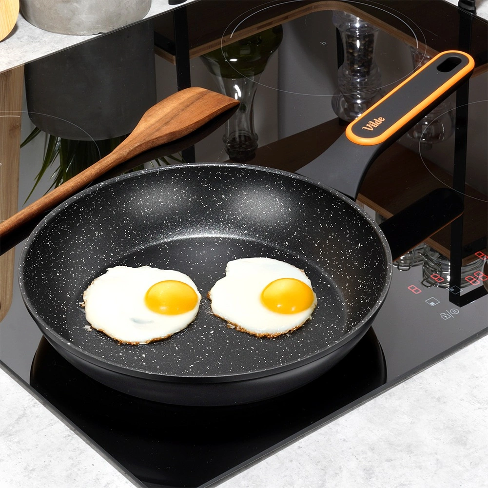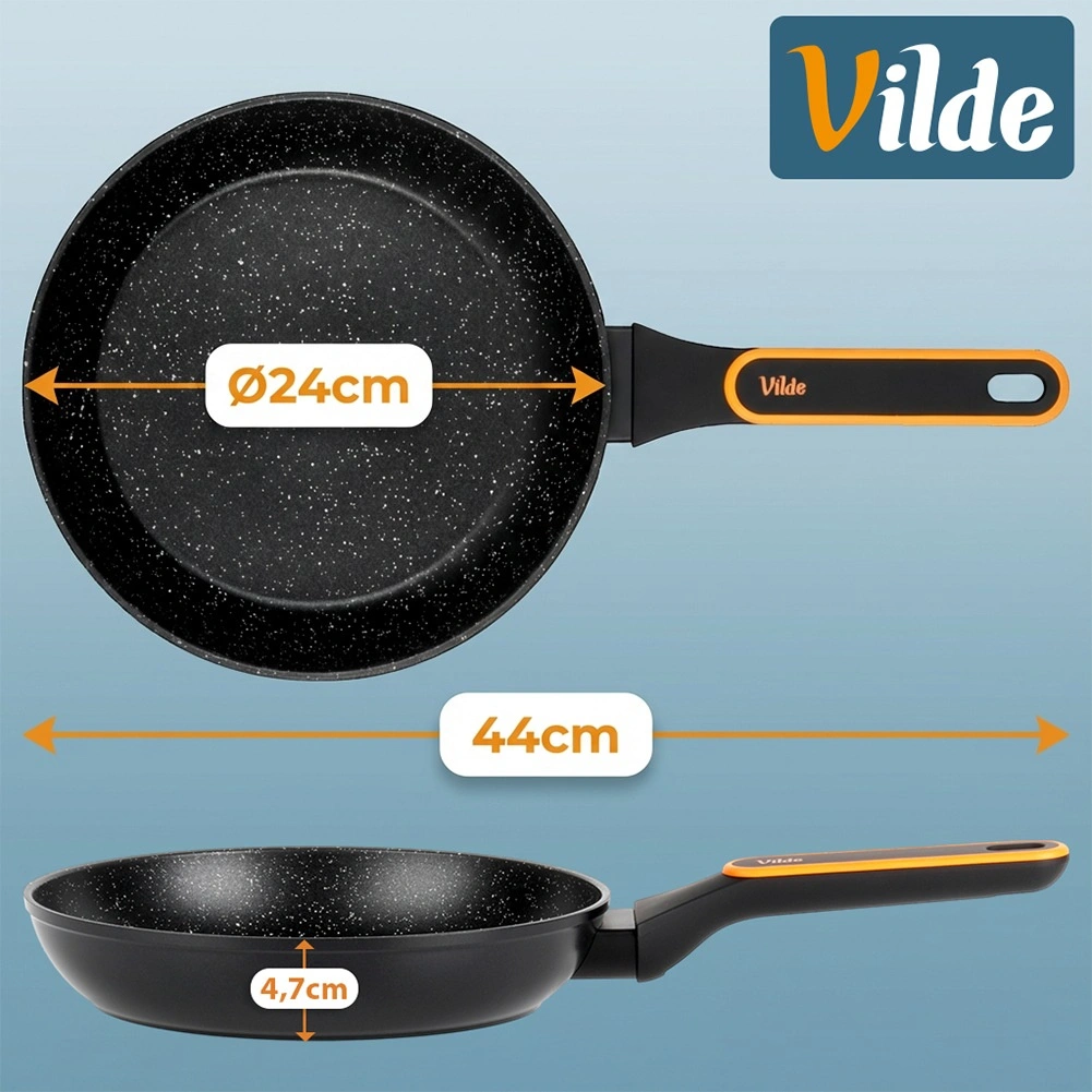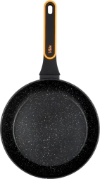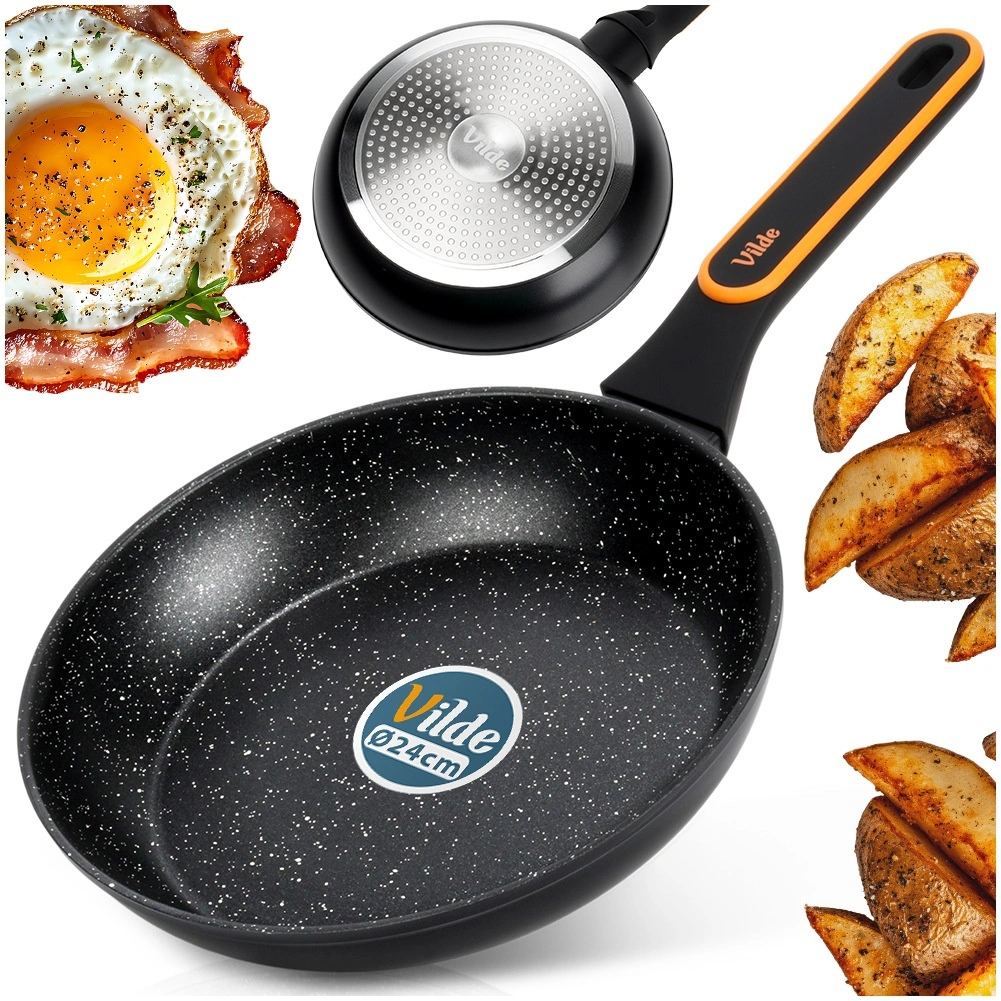 Denne granitpande i støbt aluminium kombinerer holdbarhed, elegant udseende og fremragende brugsegenskaber. Den non-stick granitbelægning minimerer brugen af olie og gør rengøringen lettere, mens den flerlags bund sikrer hurtig og energieffektiv opvarmning. Det moderne ergonomiske håndtag med skridsikker overflade bliver ikke varmt under madlavning og ligger sikkert i hånden.