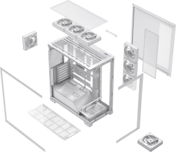 Kabinettet er fremtidssikret: understøtter ATX, mATX, ITX samt bundkort med omvendte stik (BTF), vandkøling op til 360 mm i top og side samt 120 mm bagpå. Takket være mere plads bag bundpladen, gummigennemføringer og velcroremme til kabelstyring bliver buildet rent og professionelt. Snap-on sidepaneler uden værktøj gør vedligehold og opgraderinger hurtige.