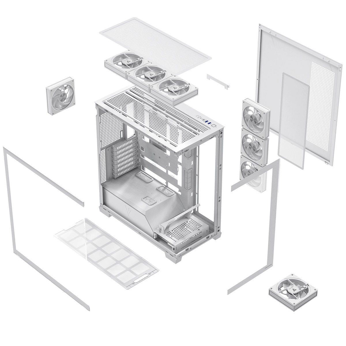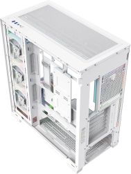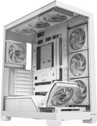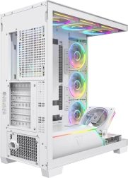 Fra fabrikken monteret 8× 120 mm ARGB (inkl. 3 med omvendte bladprofiler) og en ramme, der leder luft direkte mod GPU’en. Stabil temperatur selv under lange gaming-sessioner.
