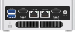 Omfattende tilslutningsmuligheder inkluderer USB-C og USB-A-porte, 2× RJ45 2,5 GbE til hurtigt netværk, HDMI og USB-C (DisplayPort) til tilslutning af op til fire skærme. Forbedret køling med dobbelte heatpipes, dobbelt luftudgang og aktiv SSD-køler sikrer stabil ydeevne selv under belastning. Kabinettet kan åbnes uden værktøj, så udvidelse klares på et øjeblik.