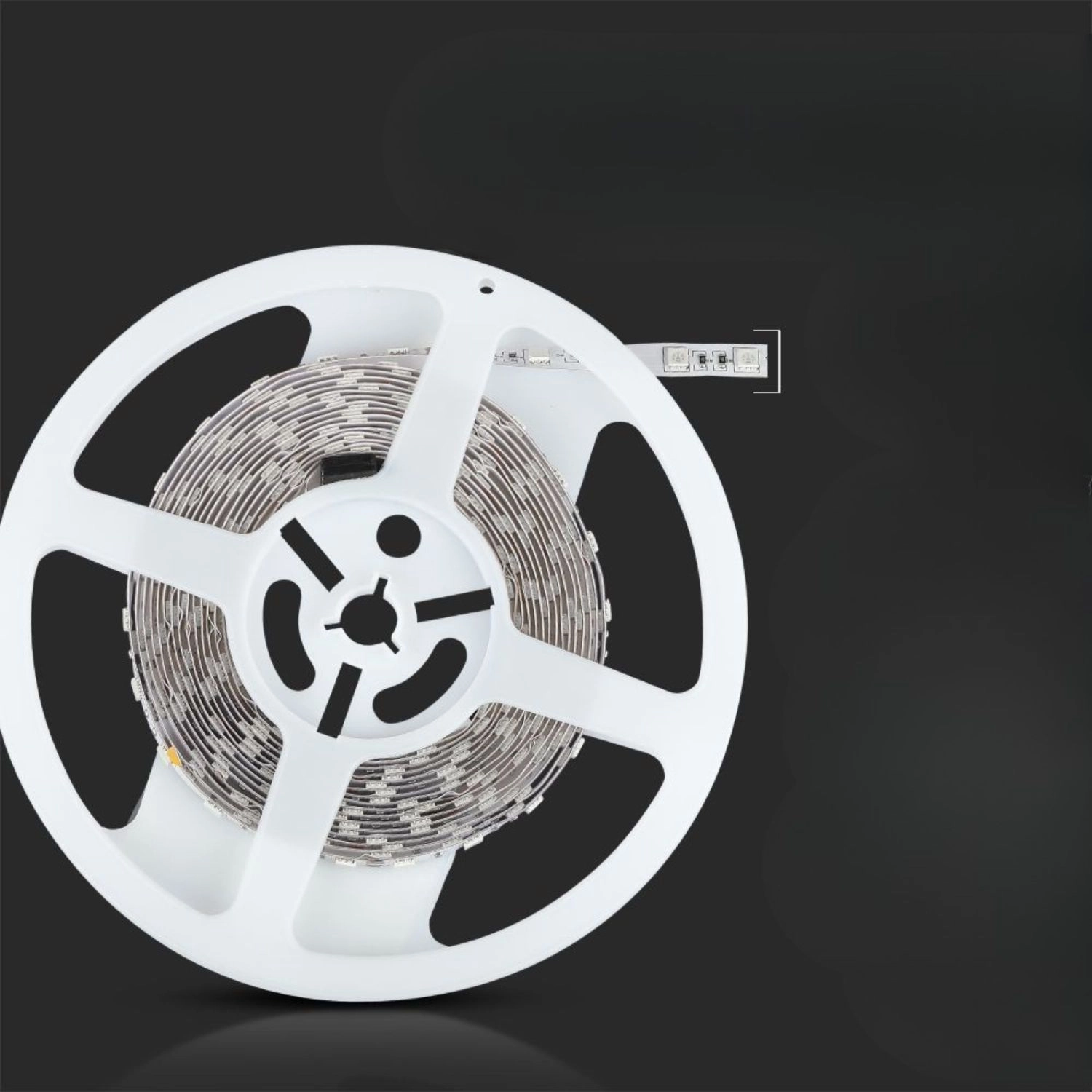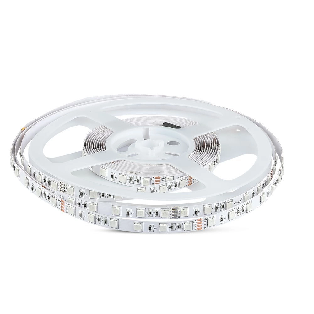 Fleksibel LED-strimmel fra VTAC med effekt på 10 W, lysfarve 4000 K (neutral hvid) og forsyning 24 V er ideel til moderne accent- og arbejdsbelysning. I længden 5 m tilbyder den jævn lysfordeling, nem installation og driftssikkerhed i tørre omgivelser IP20.