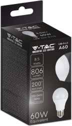 Energibesparende LED‑pære V‑TAC 8,5 W med E27‑fatning og varm lysfarve 3000 K er et ideelt alternativ til en klassisk 60W pære. Den tilbyder lysstyrke på 806 lm, moderne SMD LED for pålidelig ydeevne, lang levetid og øjeblikkelig fuld lysstyrke – en fremragende løsning til både hjem og erhverv.