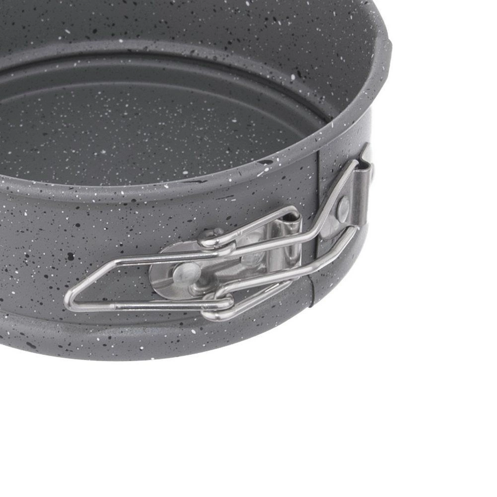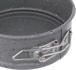 Praktisk lille form ideel til bagning af mini-kager, cheesecakes og kølede desserter. Den granitbaserede non-stick belægning minimerer risikoen for fastbrænding og gør både servering og rengøring nemmere. Den udvidelige kant med lås og det aftagelige bundstykke sikrer bekvem udtagning selv af skrøbelige bunde.