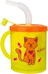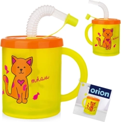 Børnekrus med sugerør og låg er et fremragende valg til hverdagens drikke både hjemme og i haven. Den halvgennemsigtige krop i gul med et glad kattemotiv gør det let for barnet at kontrollere mængden af drik. Det orange låg beskytter drikken mod spild og insekter, og det gennemsigtige sugerør sikrer behagelig og sikker drikning.