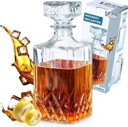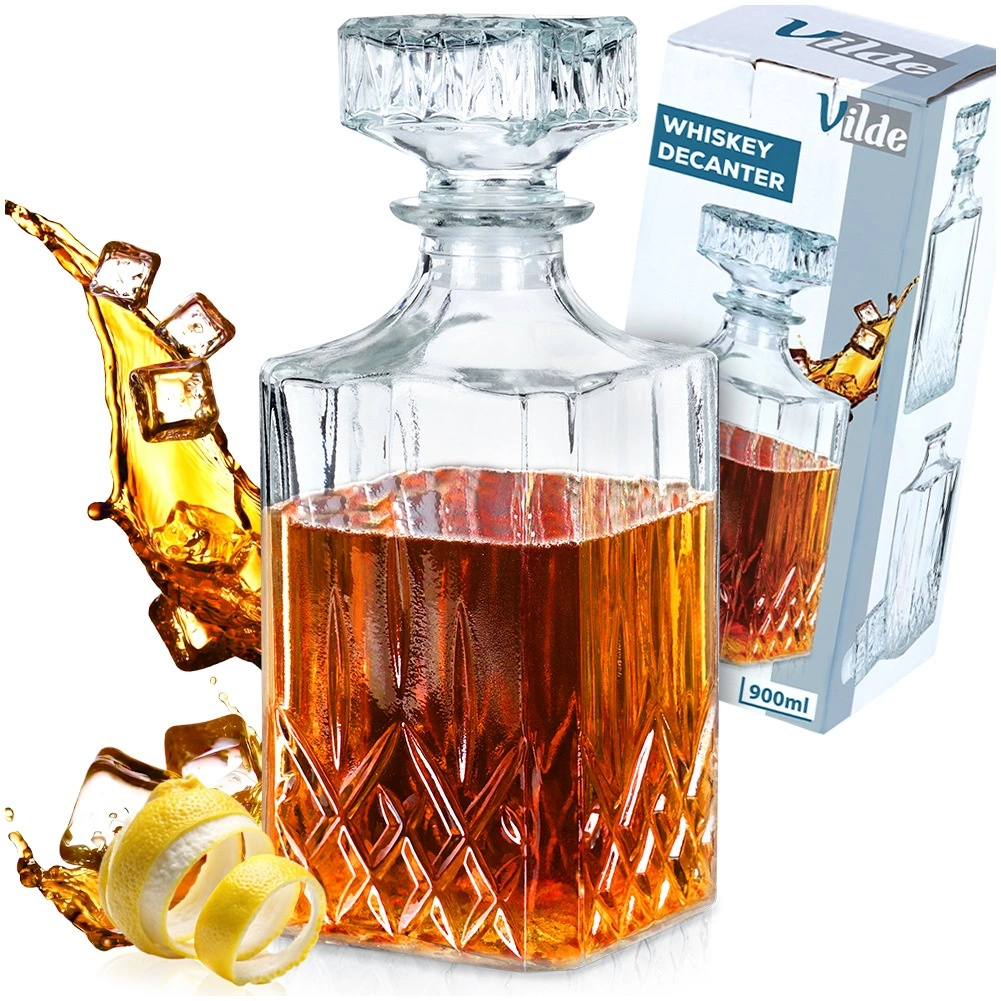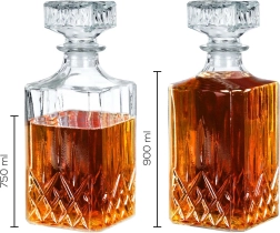 Oplev en tidløs karaffel, der kombinerer funktionalitet og æstetik. Den firkantede krop med markant dekorativ slibning gør sig flot i hjemmebaren og sikrer sikker og elegant servering af whisky, rom eller andre destillater. Takket være den optimale brugsvolumen på 750 ml er karaffelen behagelig at håndtere, og drikken får plads til at udfolde sin bouquet.