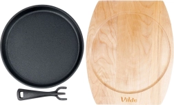 Let håndtering takket være det aftagelige håndtag og det præcist tilpassede træunderlag, som beskytter bordpladen ved servering af varme retter.