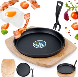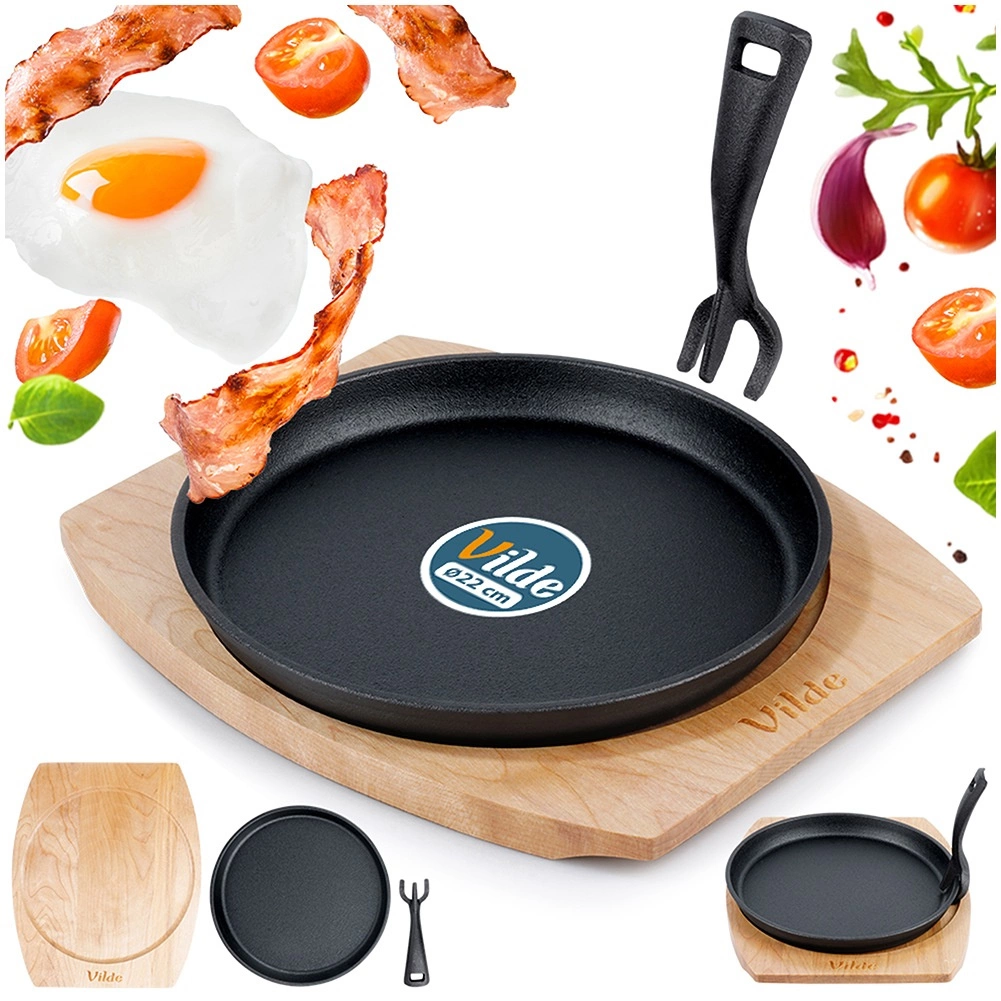 Denne runde støbejernspande med mål 22 × 2,3 cm er skabt til daglig ydeevne – fra intensiv sautering til langsom gratinering. Det massive støbejern akkumulerer varme effektivt og holder maden varm længere, hvilket er ideelt ved servering direkte på bordet. Inkluderer aftageligt håndtag for nem transport og opbevaring samt et præcist tilpasset træunderlag (27 × 23 cm), som beskytter bordoverfladen.
