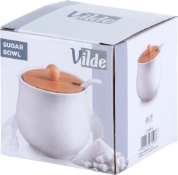 Der medfølger en keramisk ske (længde 13 cm), som kan opbevares i udskæringen i låget – sukkeret er altid lige ved hånden og hygiejnisk dækket.