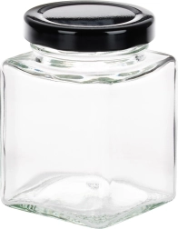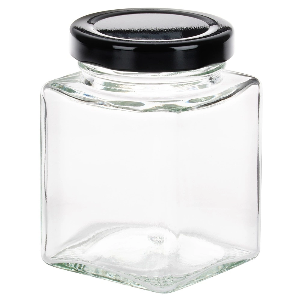 Klarglas giver øjeblikkeligt indblik i indholdet, og de sorte metaldæksler med skruegevind beskytter mod fugt og bevarer aromaen.