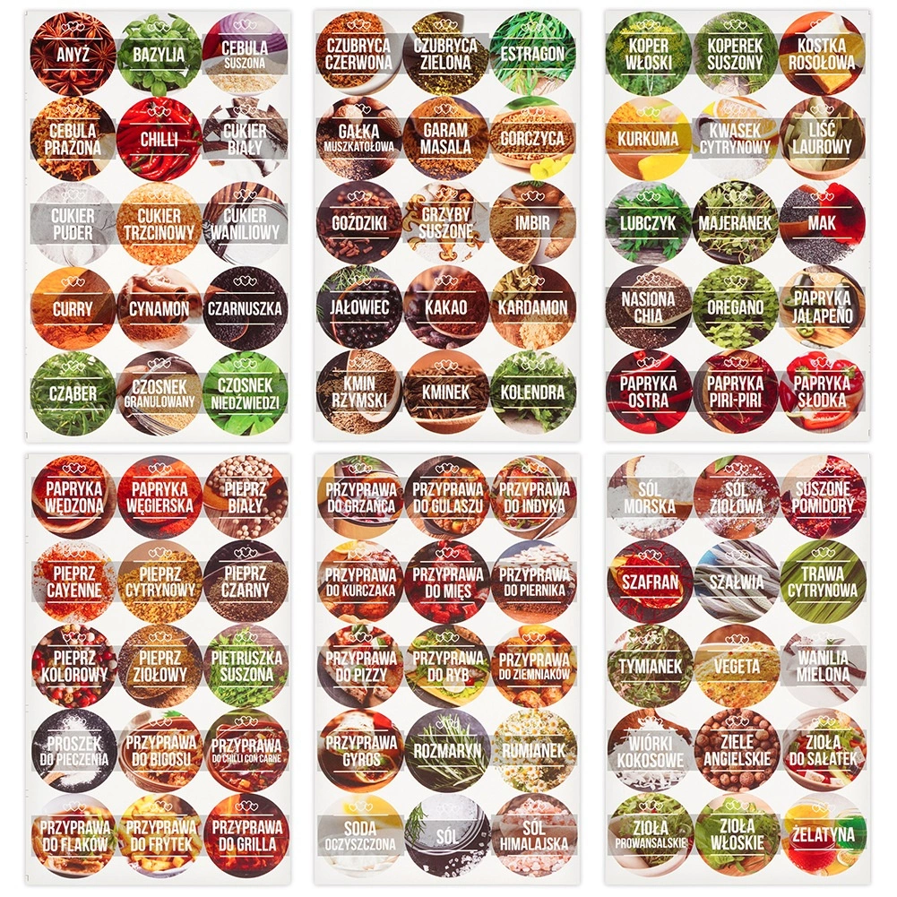 90 selvklæbende etiketter med navne på de mest populære krydderier sikrer et professionelt udseende og hurtig findelighed af den rigtige ingrediens under madlavning.