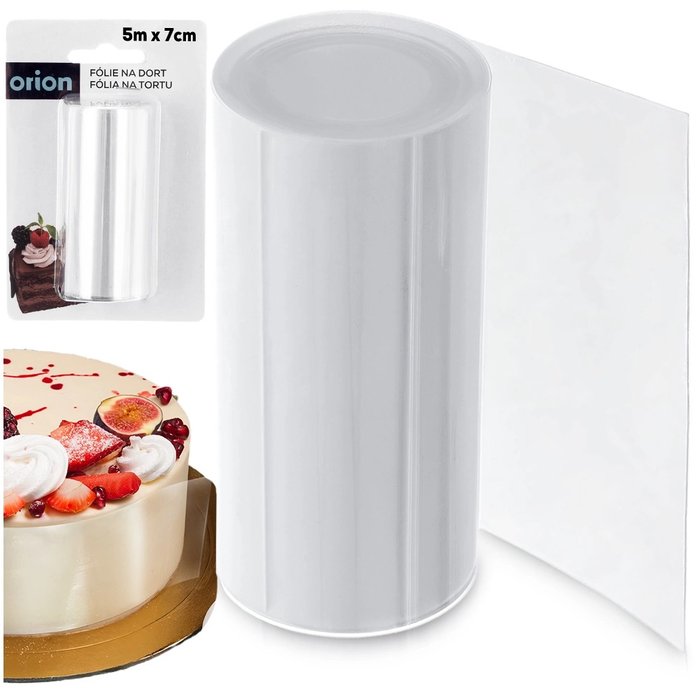 Den praktiske transparente folie beskytter kagens sider mod udtørring og skader under forberedelse, afkøling og udskæring. Med en tykkelse på 125 mikron er den stiv og robust, men samtidig tilstrækkeligt elastisk til nem tilpasning til enhver ring- eller formdiameter. Ideel til både professionelle konditorer og hjemmebagere.
