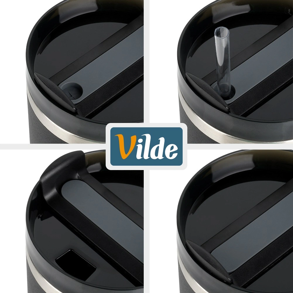 Låget med drejemekanisme og silikonepakning forhindrer lækage og tilbyder to drikkemuligheder: gennem et sugerør eller via tud uden sugerør. Skridsikre elementer på hanken giver et mere sikkert greb. For maksimal temperaturbevarelse anbefales det at skylle kruset med varmt eller koldt vand før brug og fylde omkring 90 % af volumen.