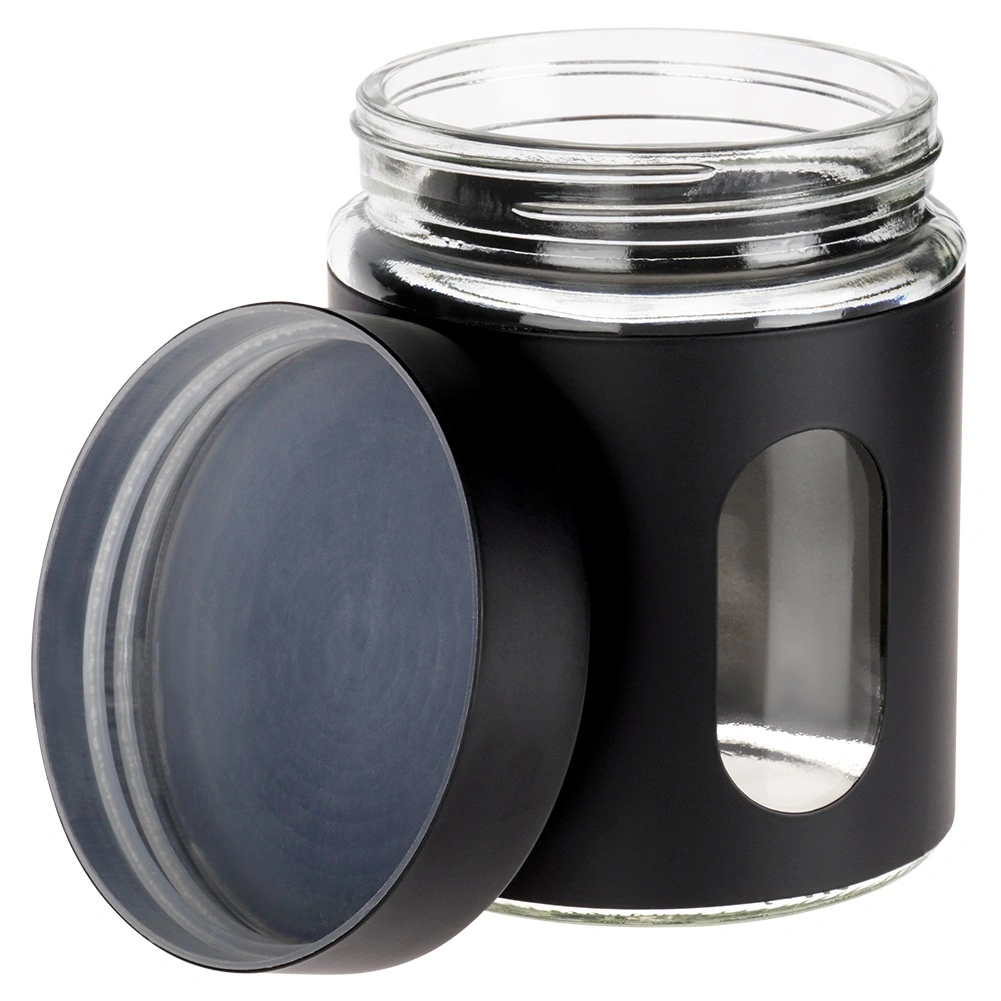 Kombinationen af klart glas og sort beskyttende hylster sikrer et moderne look, bedre greb og sikker opbevaring af tørvarer.